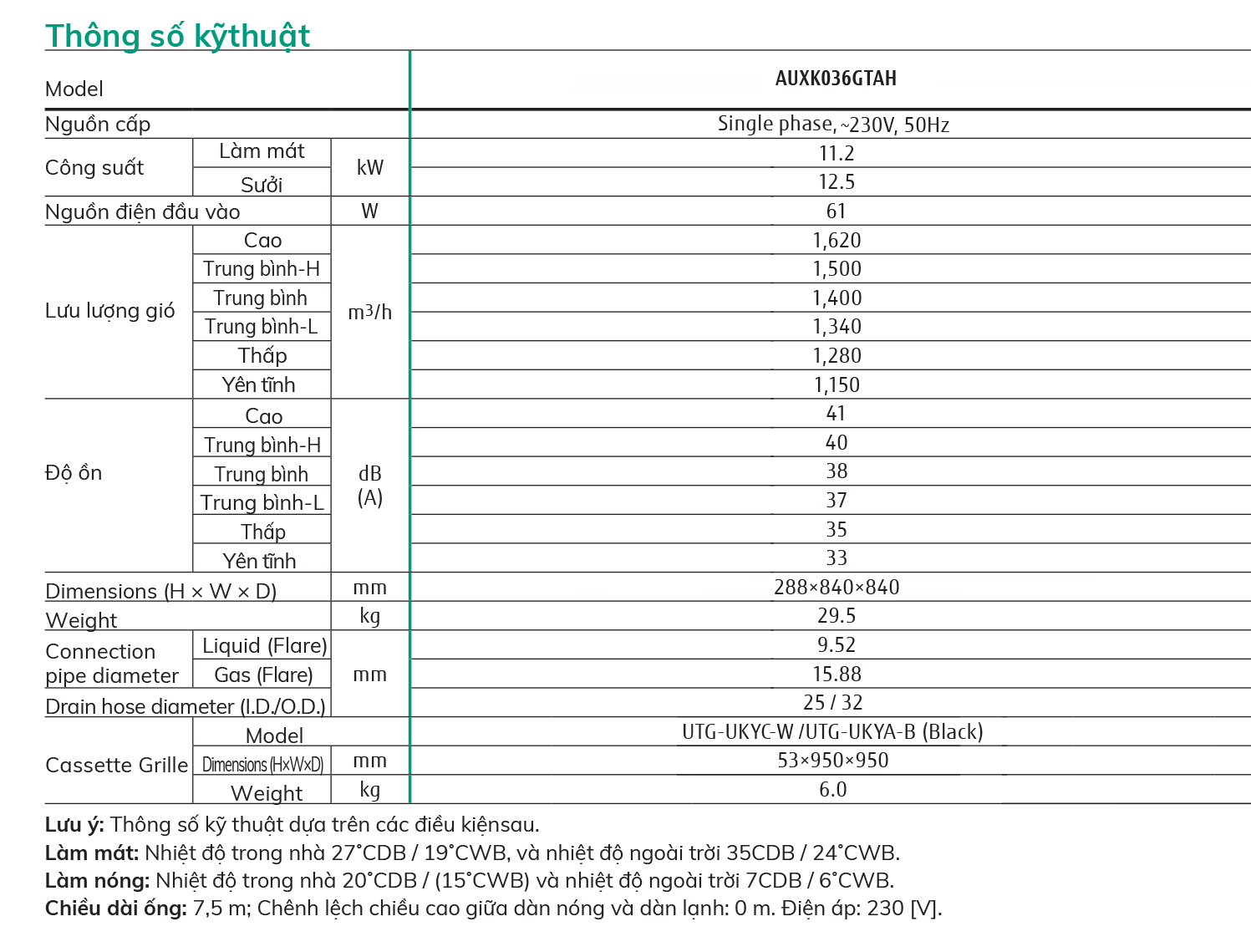 Công suất: 11.2Kw (38.200Btu/h)