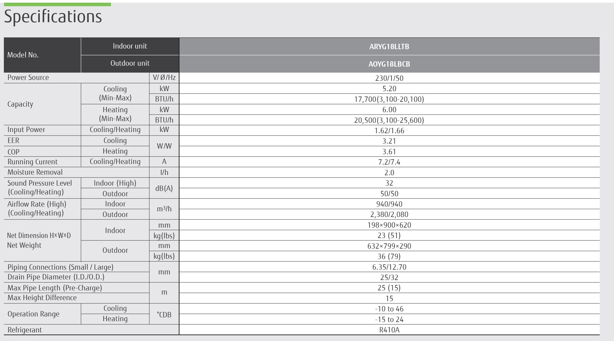 Model: ARYG18LLTB / AOYG18LBCB