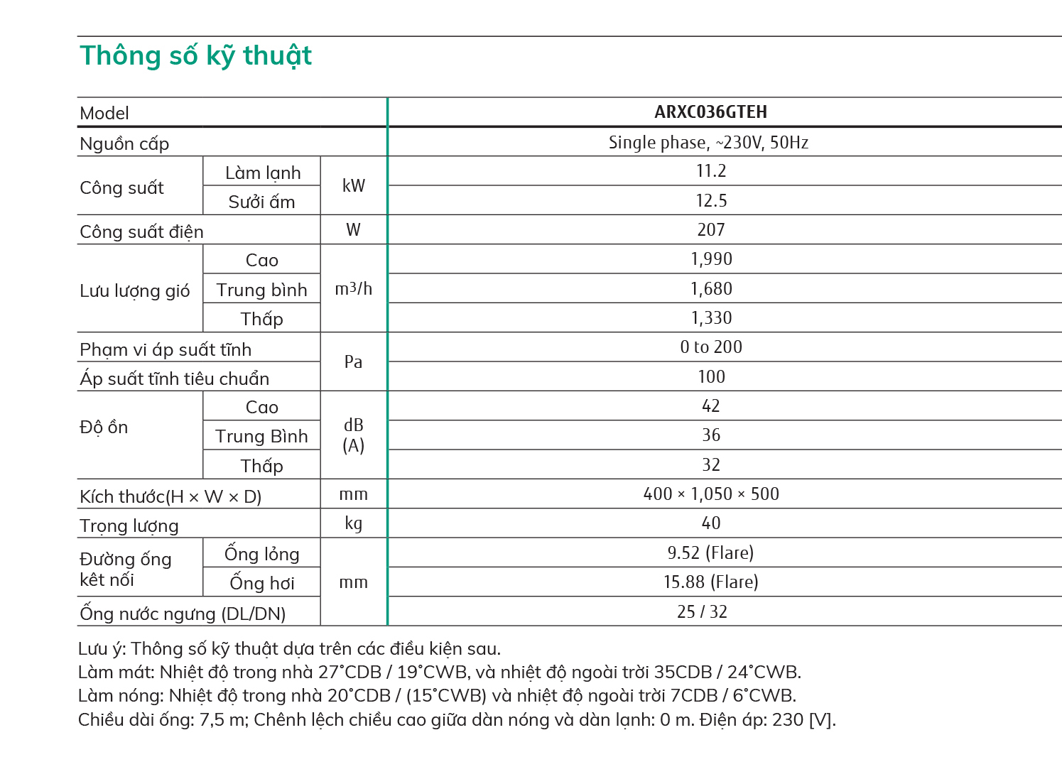Công suất: 11.2 Kw (38.200Btu/h)