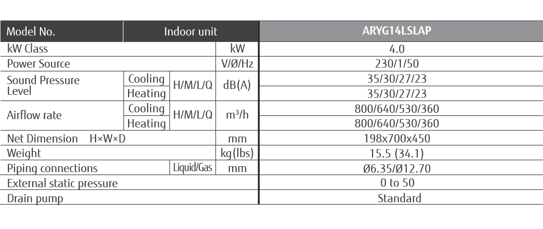 Kiểu dáng mỏng và nhỏ gọn, thích hợp cho lắp đặt ở trần hẹp với chiều sau chỉ cần 240mm