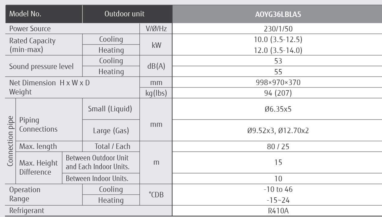 - x DÀN NÓNG MULTI FUJITSU AOYG36KBTA5 (32.400Btu/h) | MULTI INVERTER R32
